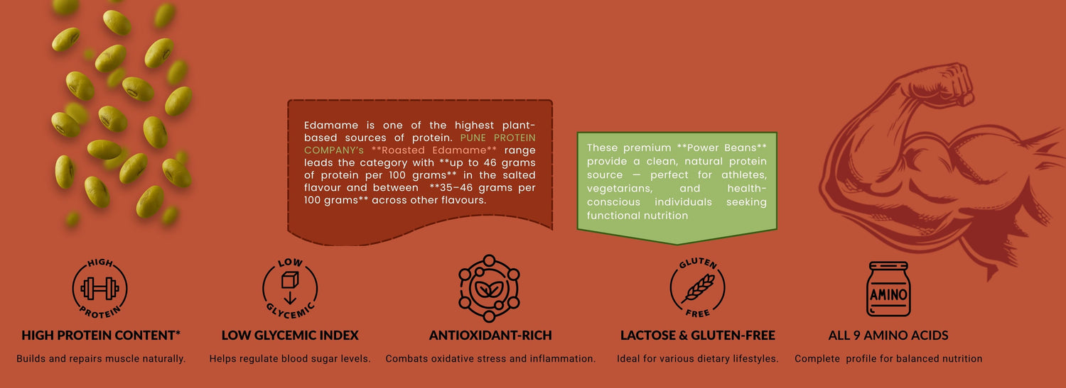 Our edamame snacks are protein-rich — offering up to 46g of plant protein per 100g pack (check pack for details).